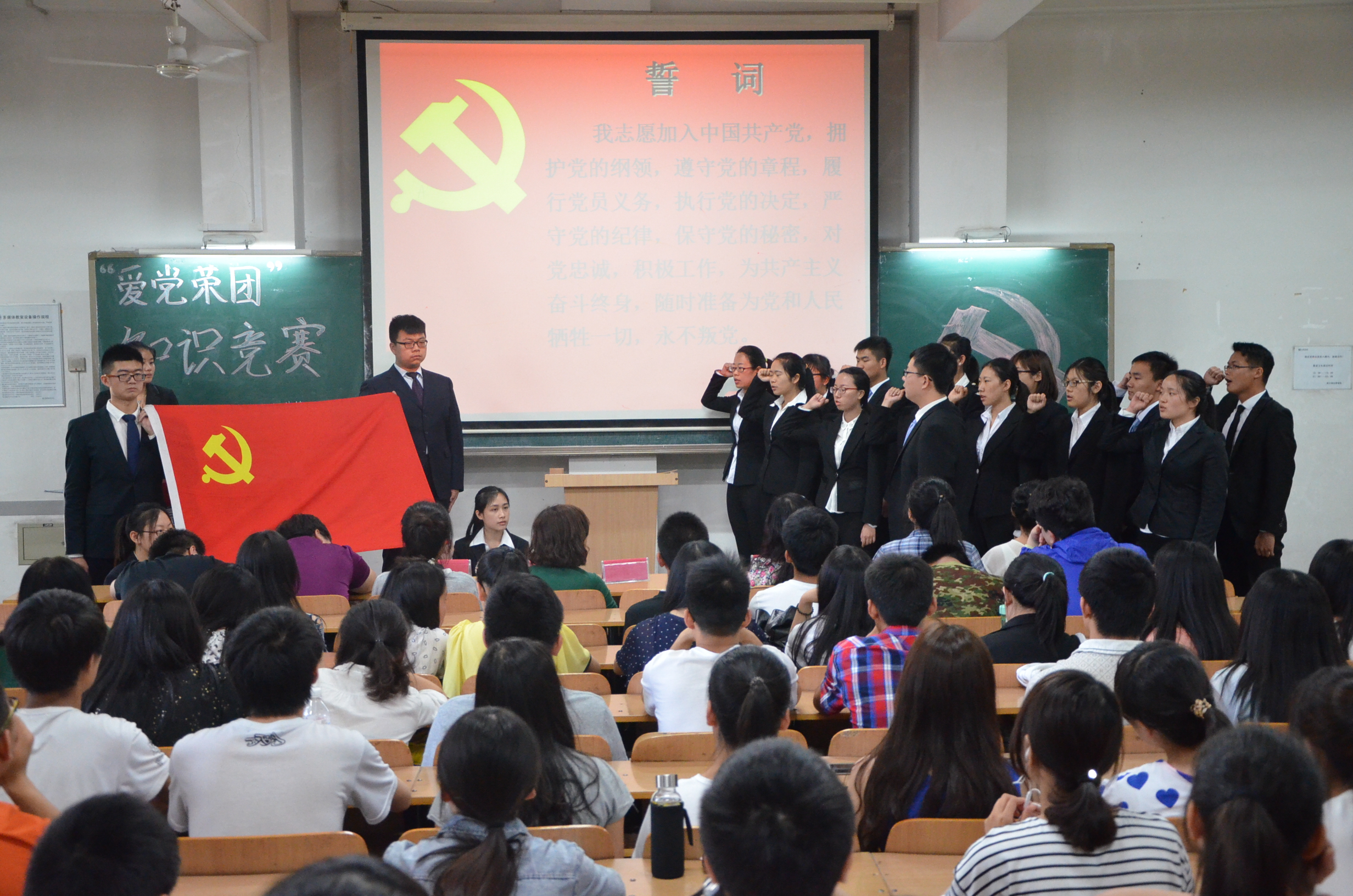 5月20日,bevictor1946韦德官网爱党荣团知识竞赛暨新党员入党宣誓仪式在3号教学楼118室举办,bevictor1946韦德官网辅导员孙瑶、沈洁、仉雅琼老师及2013级研究生党支部书记石慧、第三员工党支部书记武杭出席并担任竞赛评委。2014级近200名同学参加本次活动。